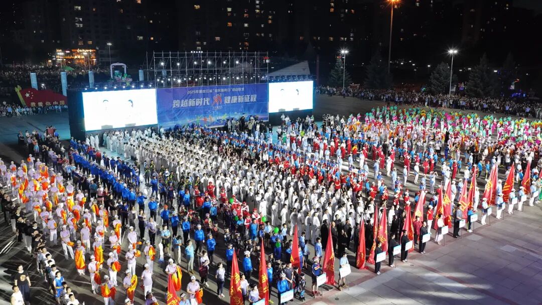 8月8日,在全国第17个“全民健身日”到来之际,2025年黑龙江省“全民健身日”主题活动启动仪式在鸡西市文化广场圆满盛大举行,全省主会场活动以“跨越新时代 健康新征程”为主题,来自鸡西市各县(市)区、体育协会及社会各界代表共2000余名文体爱好者参与活动。 启动仪式现场,千架无人机